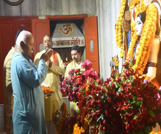 गोरखपुर पहुंचे संघ प्रमुख ने किया गोरखनाथ मंदिर में पूजा