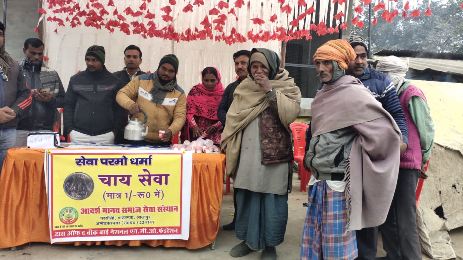 जहांगीरगंज में जनपद की अग्रणी संस्थाओं की भूमिका में आदर्श मानव समाज सेवा संस्थान धरातल पर मानवीय कार्य करती हुई नजर आई। संस्था ने टी स्टाल लगाकर लोगों को चाय पिलाने की सेवा शुरू कर लोगो को संस्था के विषय/उद्देश्यों से अवगत कराने का कार्य किया गया।संस्था के इस टी स्टाल कार्यक्रम की अध्यक्षता संस्था के अध्यक्ष घनश्याम ने किया, वही नगर पंचायत जहांगीरगंज के प्रतिष्ठित समाजसेवी सुनील कुमार मौर्य सहित दर्जनों सम्मानित लोगों ने चाय पीकर कार्यक्रम को हरी झंडी दिखाई और संस्था के इस कार्य की सराहना भी किए। अवगत हो आदर्श मानव समाज सेवा संस्थान विगत 4 वर्षों से क्षेत्र में सामाजिक कार्य कर रही है जिसमे पर्यावरण, जल संरक्षण और नारी सशक्तिकरण के प्रति लोगों को जागरूक करने के साथ साथ मानवीय कार्य जैसे गर्मी के समय में प्याऊं लगाकर लोगों को पानी पिलाना,ठंठी में लोगों को चाय पिलाना, गरीबों में कंबल व सार्वजनिक स्थलों पर अलाव की व्यवस्था करना इत्यादि कार्य करती है। दिनांक 10/02/23 को टी स्टाल लगाकर सेवा कार्य करने, अलाव इत्यादि की व्यवस्था करने के लेकर विगत 27/12/2022 दिन मंगलवार को संस्था के प्रबंधक रमेश मौर्य के निवास आवास(तेतरिया) पर ही कार्यकर्ताओं ने बैठक कर मानवीय कार्य करने को लेकर चर्चा की गई थी। जिसके फलस्वरूप संस्था के माध्यम से विभिन्न स्थानों पर मानवीय कार्य किया जा रहा है।
