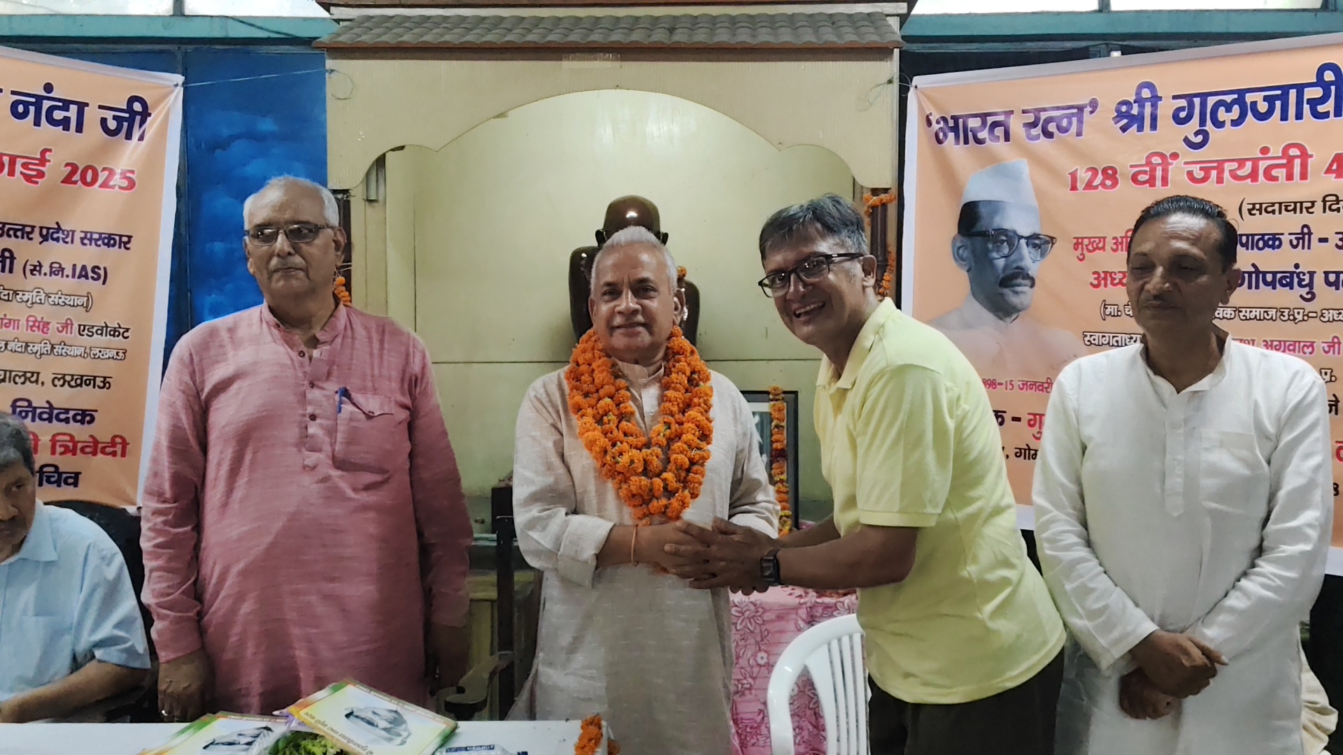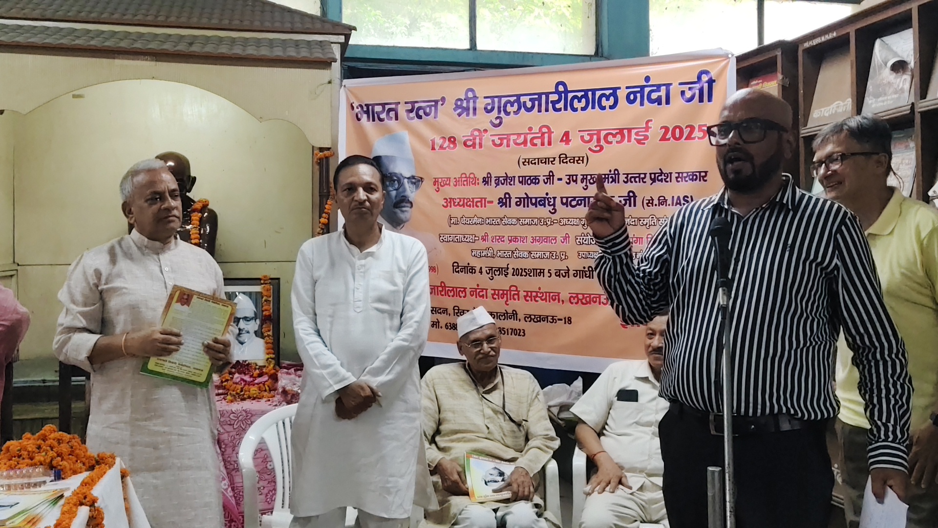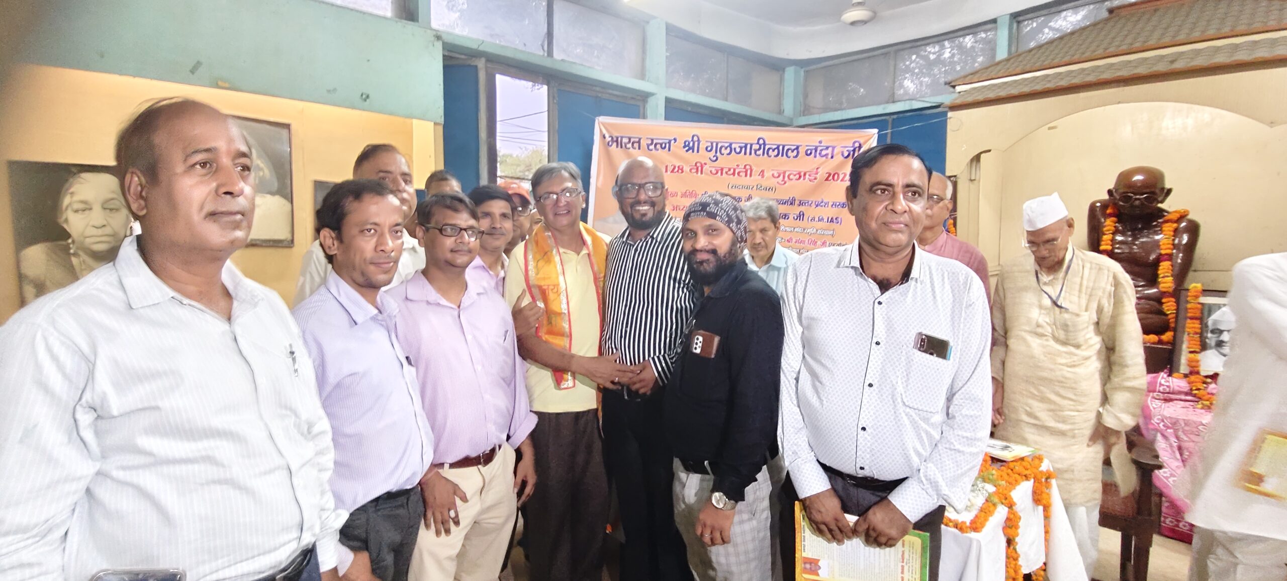 गुलजारीलाल नन्दा स्मृति संस्थान,लखनऊ के तत्वाधान में आयोजित 128वीं श्री नन्दा जयन्ती के आयोजक संस्था के सचिव ज्ञानी त्रिवेदी ने उद्बोधन एवं कार्यक्रम संचालन में कहा-” प्रातः स्मरणीय श्री गुलजारीलाल नन्दा जी देश की महान विभूतियों में से एक थे!