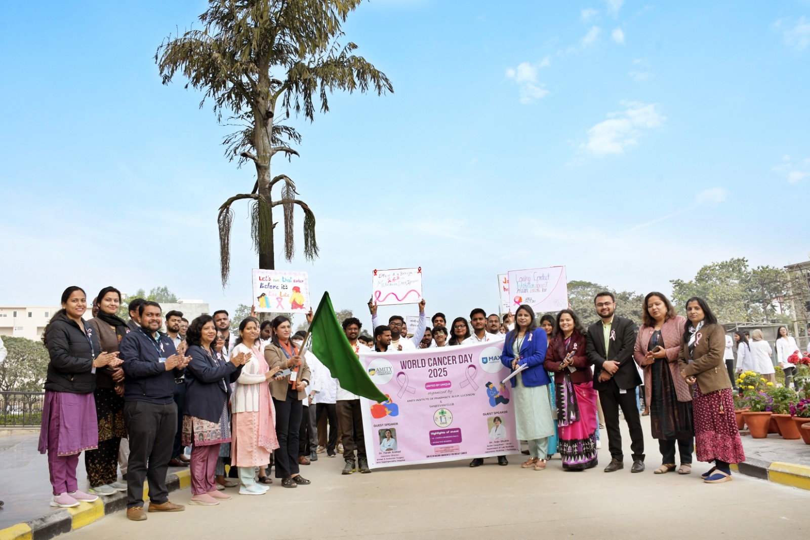 अमिटी इंस्टिट्यूट ऑफ फार्मेसी, अमिटी यूनिवर्सिटी उत्तर प्रदेश, लखनऊ कैंपस में “वर्ल्ड कैंसर डे” पर “ब्रेस्ट कैंसर जागरूकता” का आयोजन किया गया। इस कार्यक्रम में छात्रों ने कैंपस में ब्रेस्ट कैंसर के प्रति जागरूकता रैली निकाली, जिसके बाद कैंसर की रोकथाम और उसके प्रारंभिक निदान पर एक इंटरैक्टिव सत्र आयोजित किया गया।