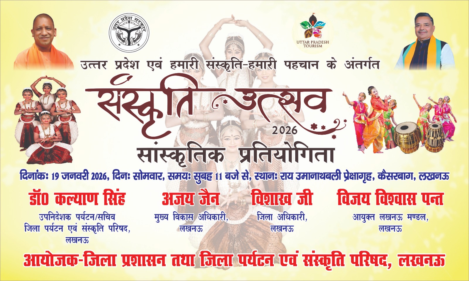 लखनऊ, – उत्तर प्रदेश राज्य की स्थापना दिवस के अवसर पर 24-26 जनवरी, 2026 के मध्य त्रिदिवसीय आयोजन किया जा रहा है। इस कार्यक्रम का उद्देश्य प्रदेश की संरकृतिक सामाजिक एवं विकासात्मक उपलब्धियों को व्यापक रूप से जन-जन तक पहुंचाना है।