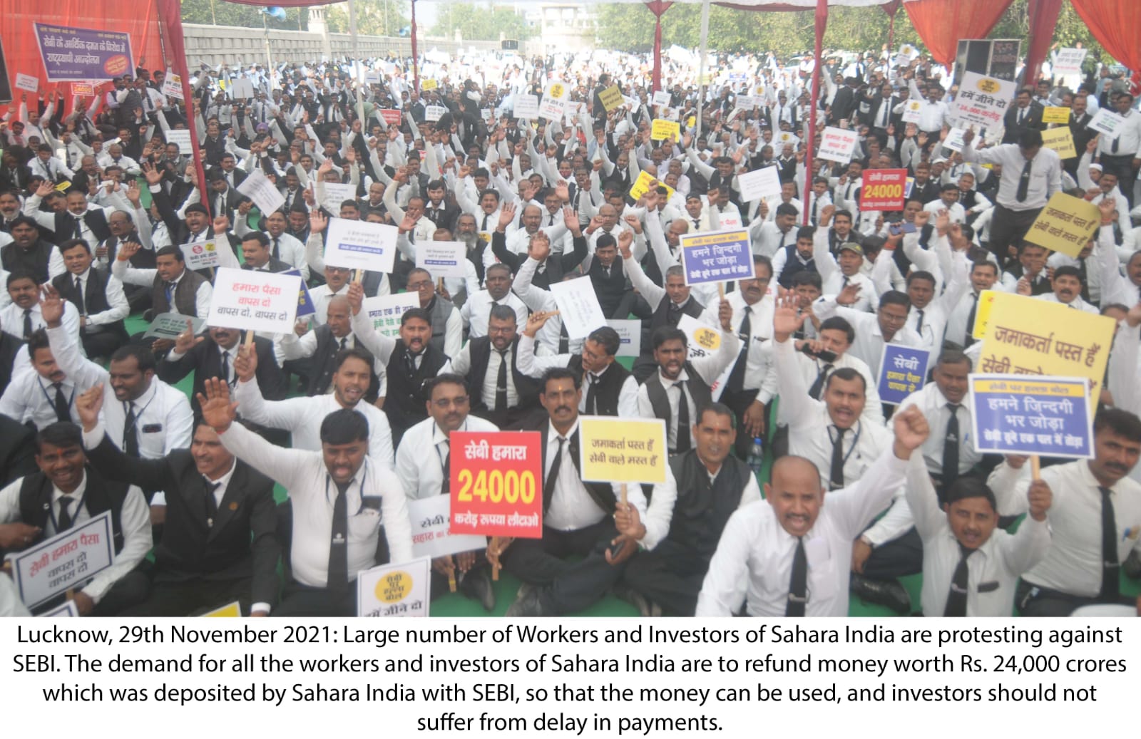 सेबी के विरोध में सहारा कार्यकर्ताओं एवं सम्मानित निवेशकों का धरना