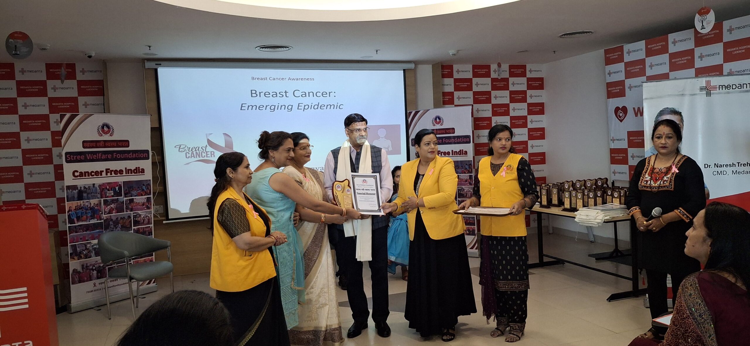 स्त्री वेलफेयर फाउंडेशन , द्वारा में मेदांत अस्पताल में कैंसर जागरूकता अभियान।